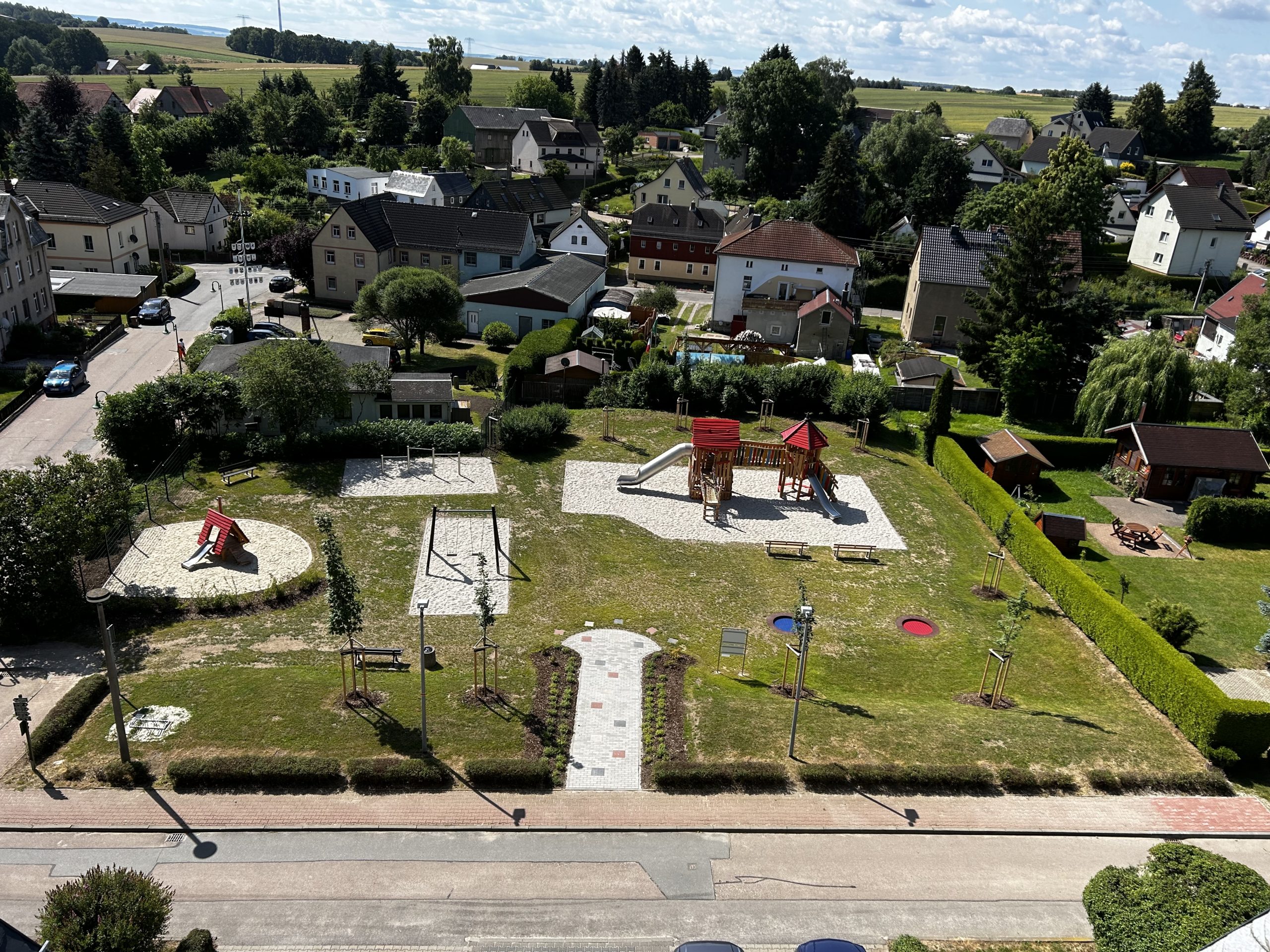 Mit der Sanierung des direkt neben Schule und Kita gelegenen Spielplatzes im Ortsteil Köthensdorf wurde das ortsbildprägende Dorfzentrum kindgerecht aufgewertet. Der sanierte Platz kann auch von Schule und Kita genutzt und als Treffpunkt für die nachwachsende Generation entwickelt werden, was für die Familienfreundlichkeit der Region steht.